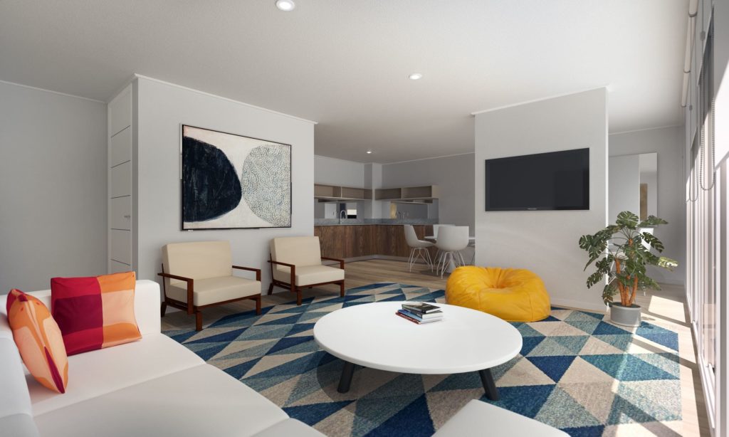 Edificio moderno y funcional: El proyecto contempla una torre de 11 pisos, con 12 departamentos por piso, ofreciendo una comunidad bien integrada. El proyecto está equipado con bicicleteros, acceso controlado para mayor seguridad y un punto limpio para fomentar el reciclaje y el cuidado del medio ambiente.