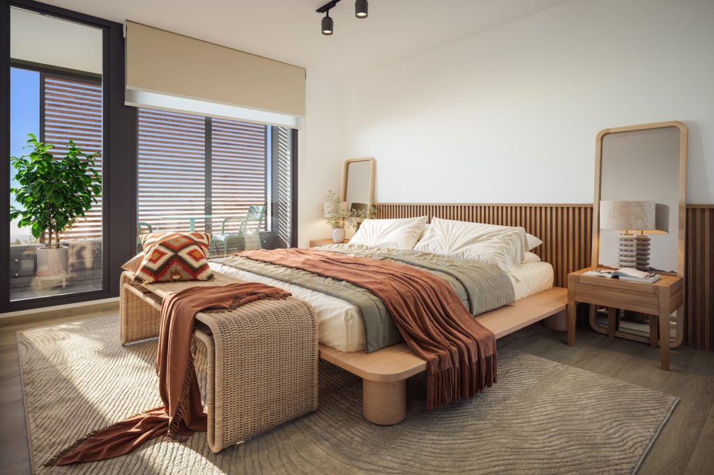 Altamura ofrece porcelanato y pisos vinílicos en dormitorios, junto a ventanas termopanel color antracita que mejoran el aislamiento térmico y acústico. Incorpora porcelanatos, griferías y muebles de baño Atika y MK, asegurando calidad, durabilidad y diseño contemporáneo.