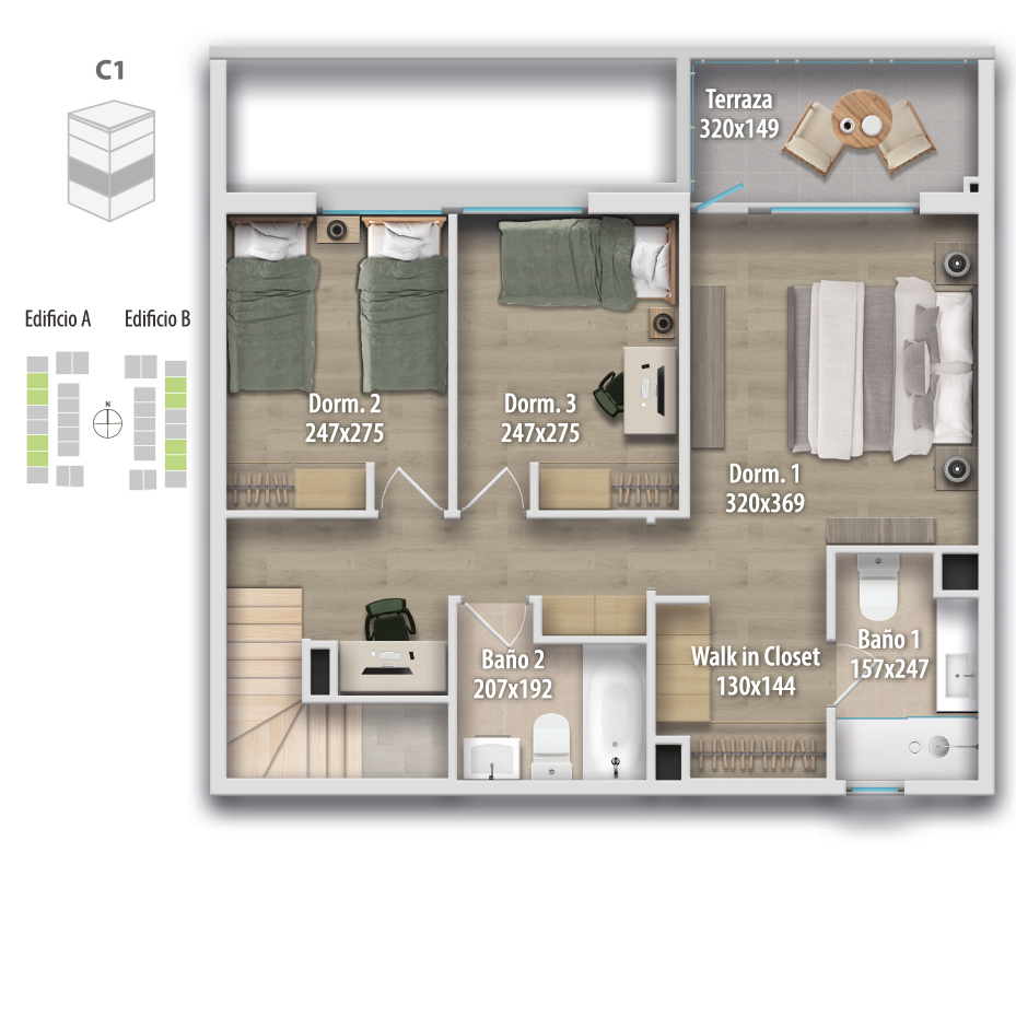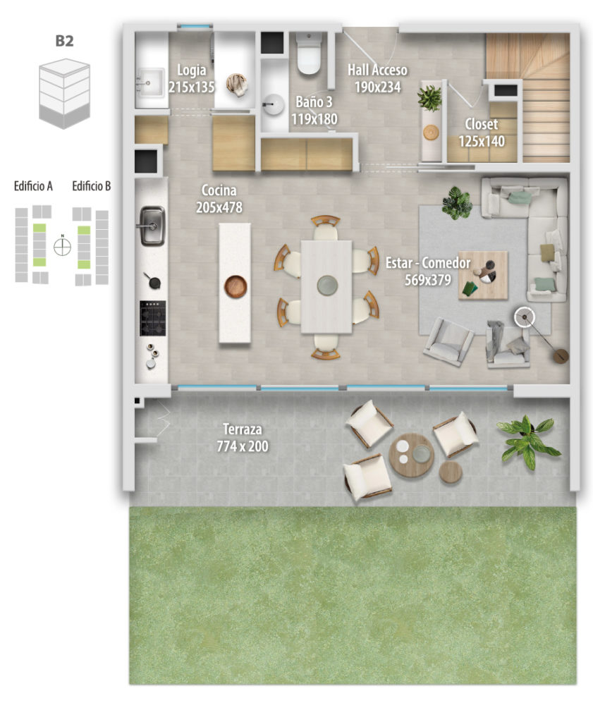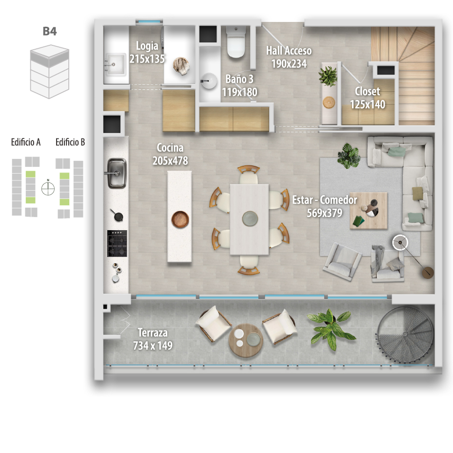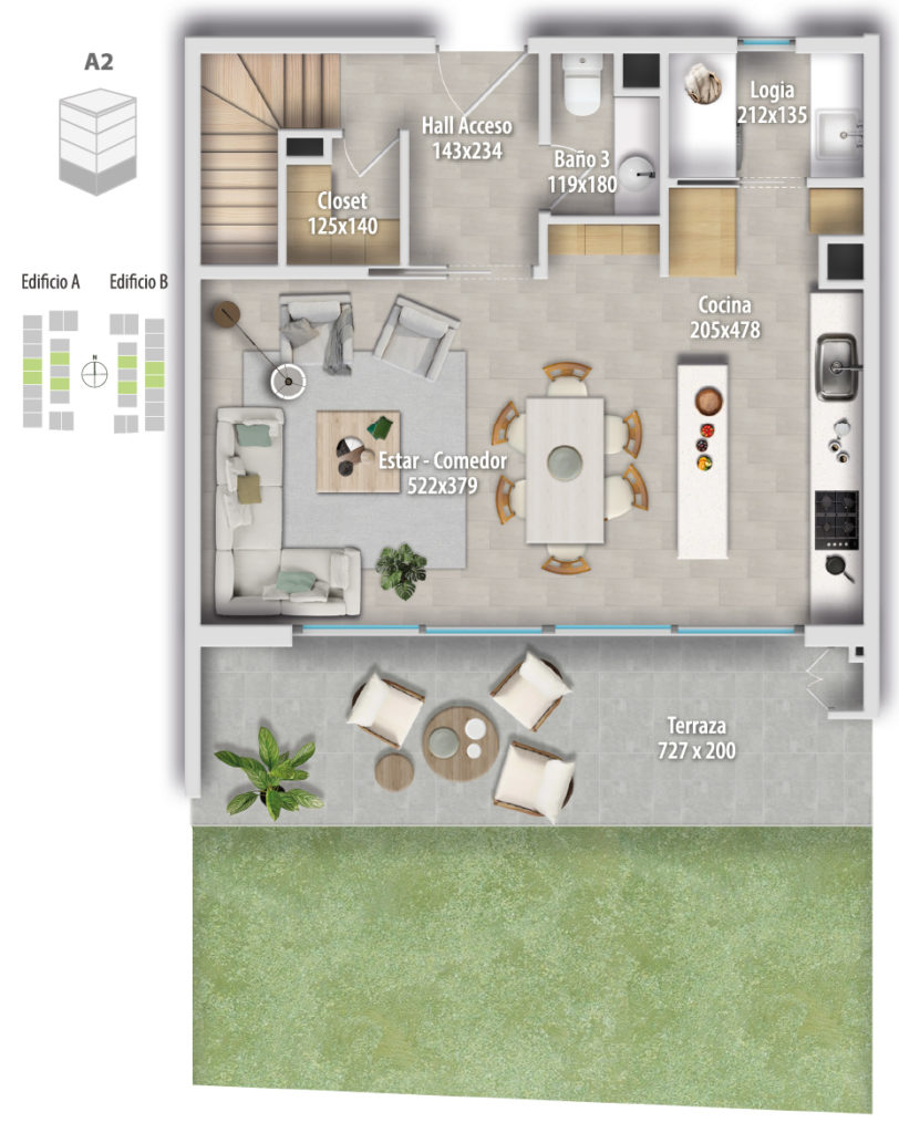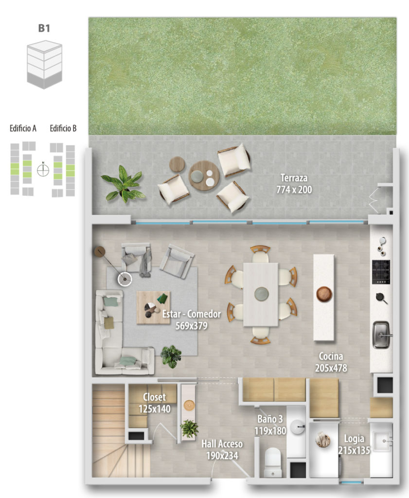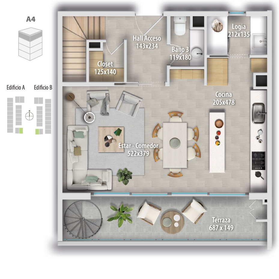 Altamura está compuesto por 68 departamentos dúplex, donde puedes elegir cómo vivir tu espacio: Primer piso, con mayor amplitud y patio privado, o departamentos en altura, con terraza y vistas panorámicas, ideales para disfrutar cada atardecer.