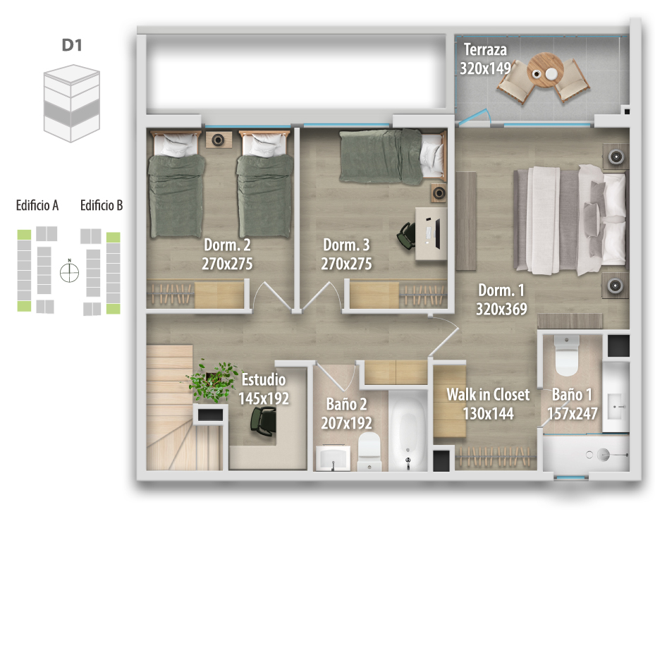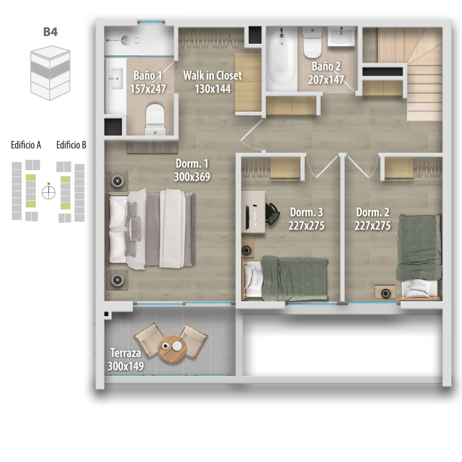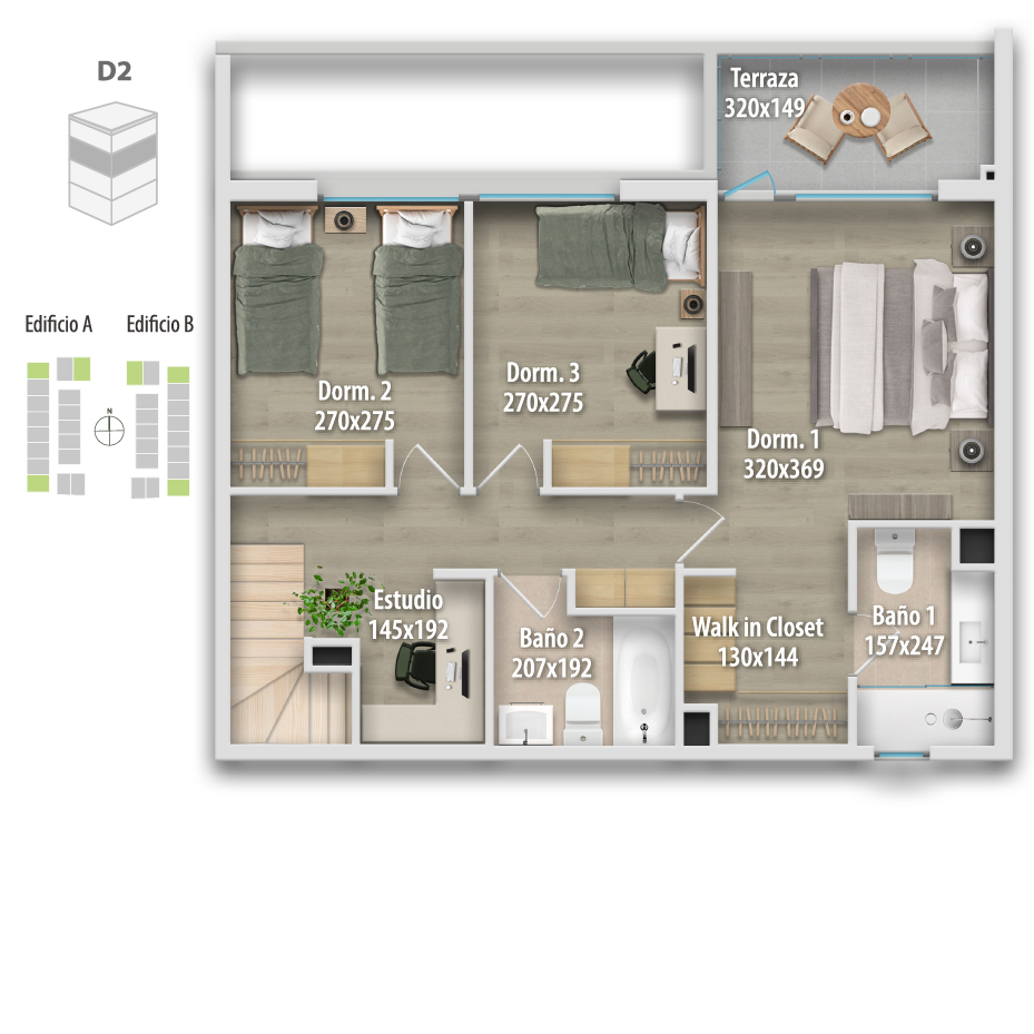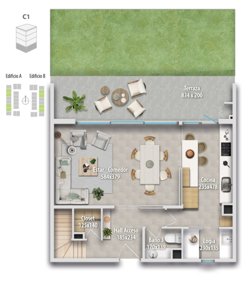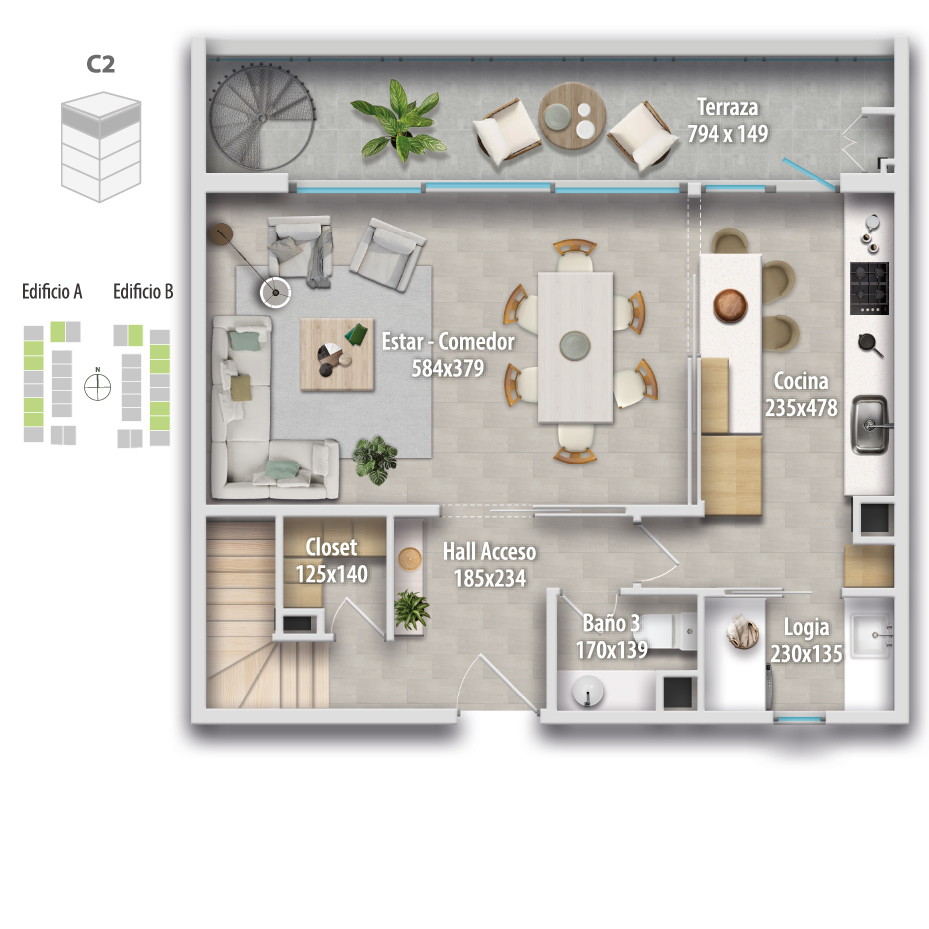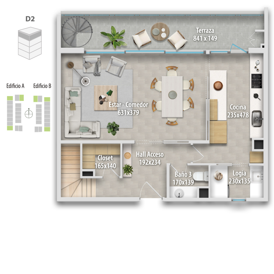 Altamura está compuesto por 68 departamentos dúplex, donde puedes elegir cómo vivir tu espacio: Primer piso, con mayor amplitud y patio privado, o departamentos en altura, con terraza y vistas panorámicas, ideales para disfrutar cada atardecer.