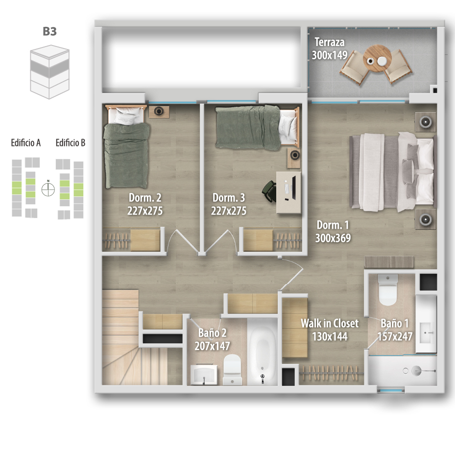 3 dormitorios